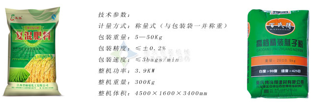 哈爾濱包裝機的大袋粉劑稱重包裝機所包裝案例及參數: